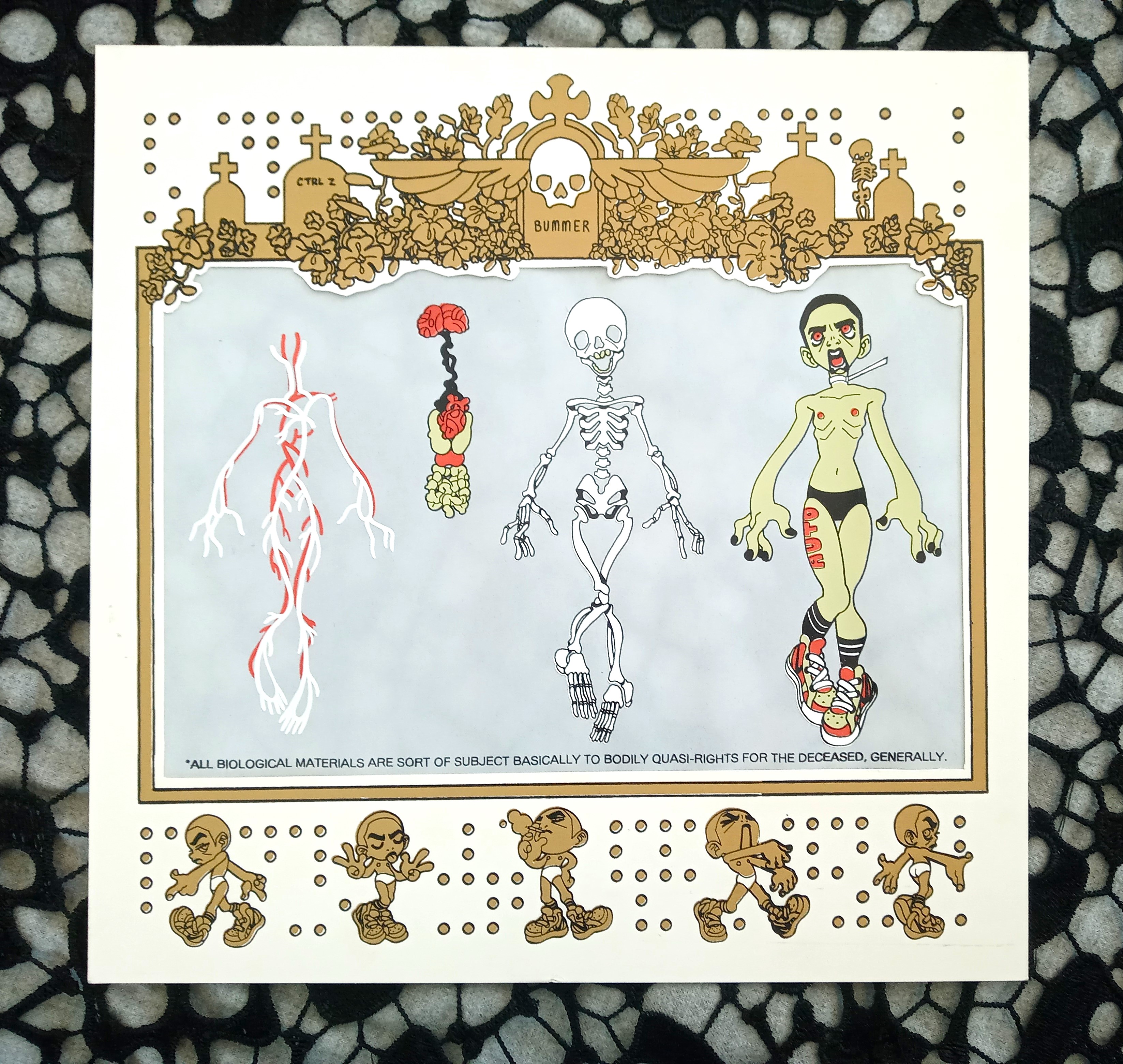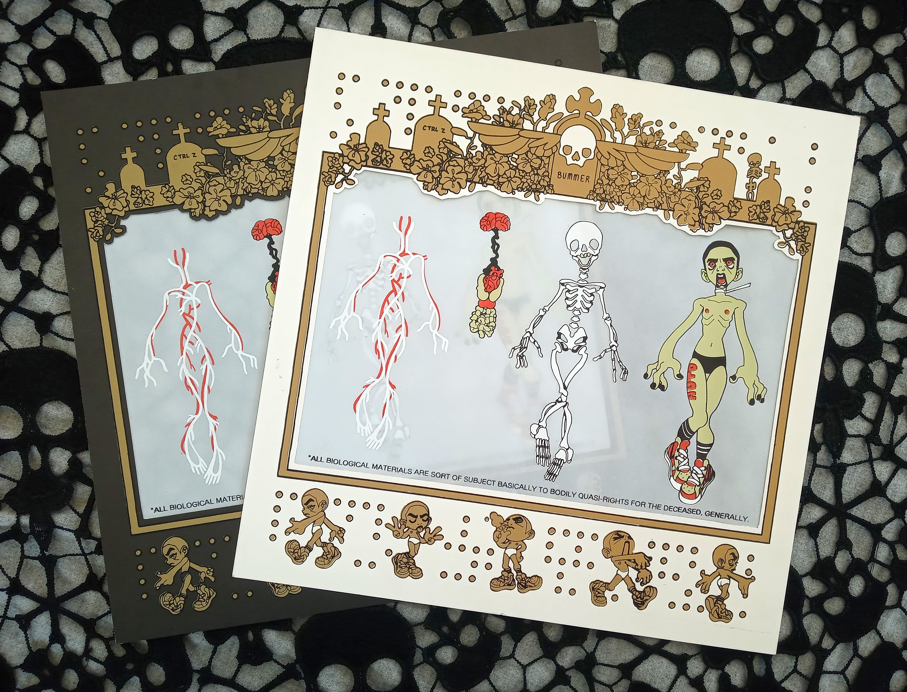 Hand-pulled 11"x11" silkscreen prints on vellum with printed card stock frames in black or white.