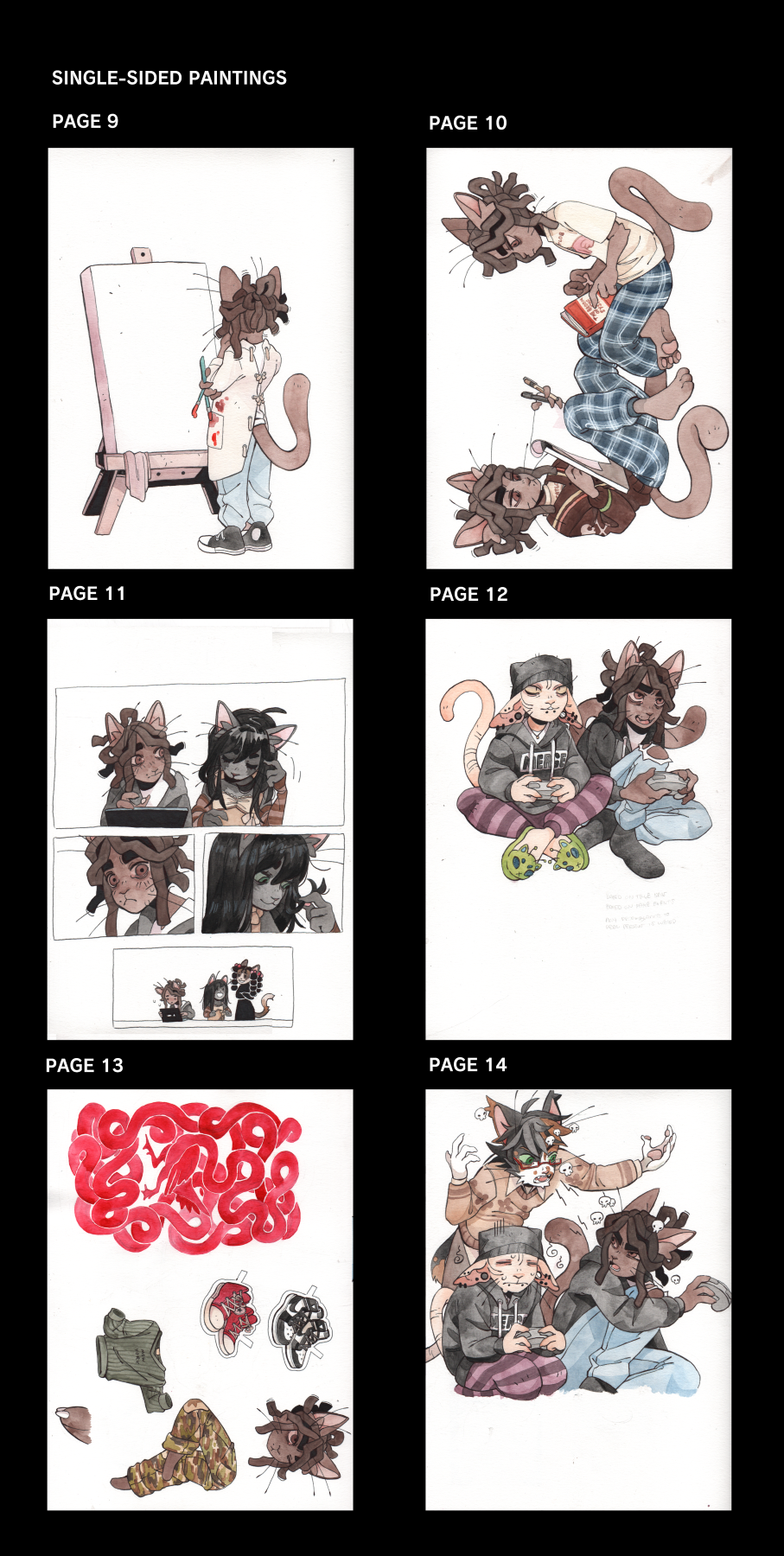 Original 9"x12" watercolor paintings from TOMCAT BACHELOR'S. Certain paintings are double-sided.