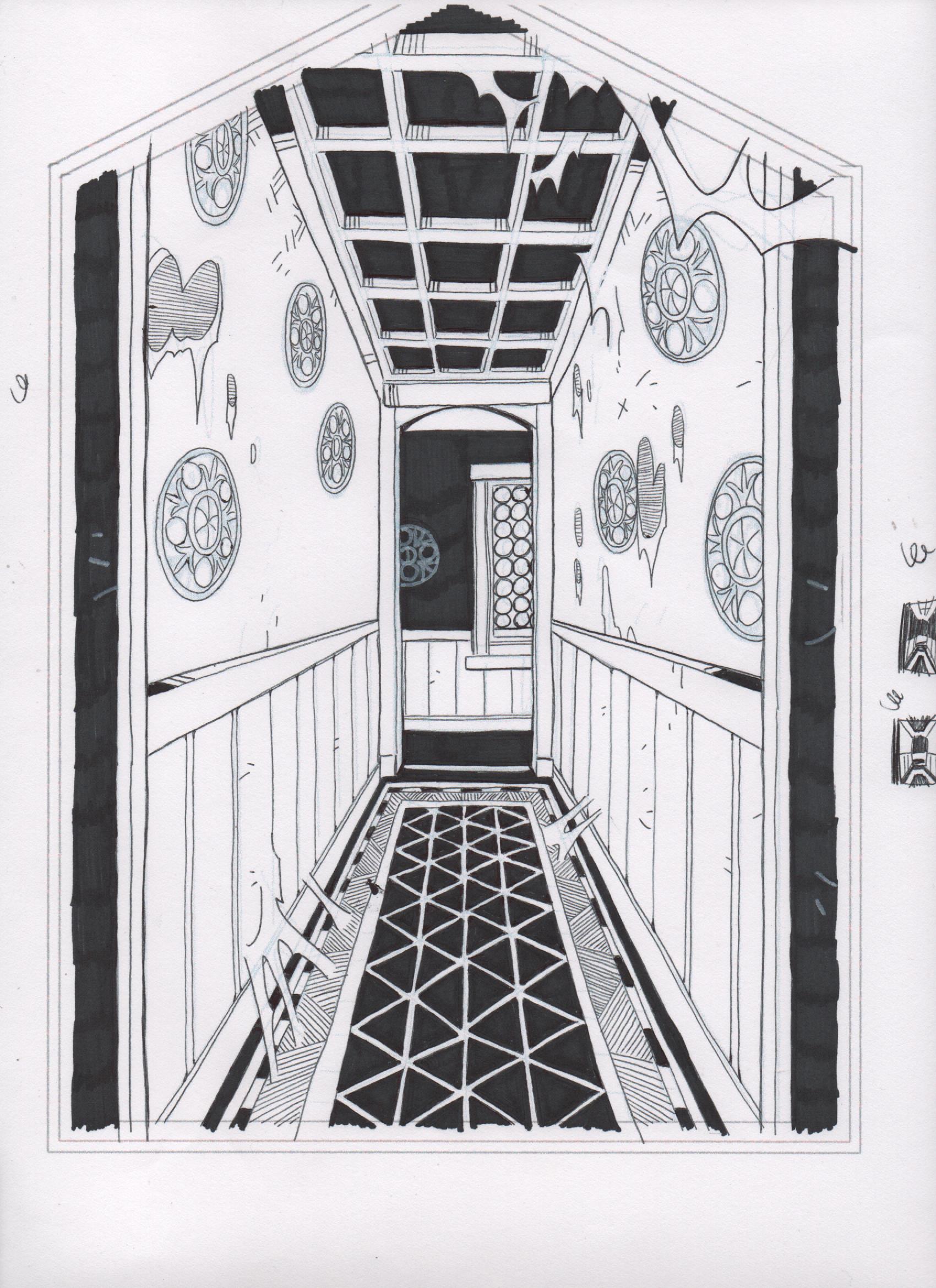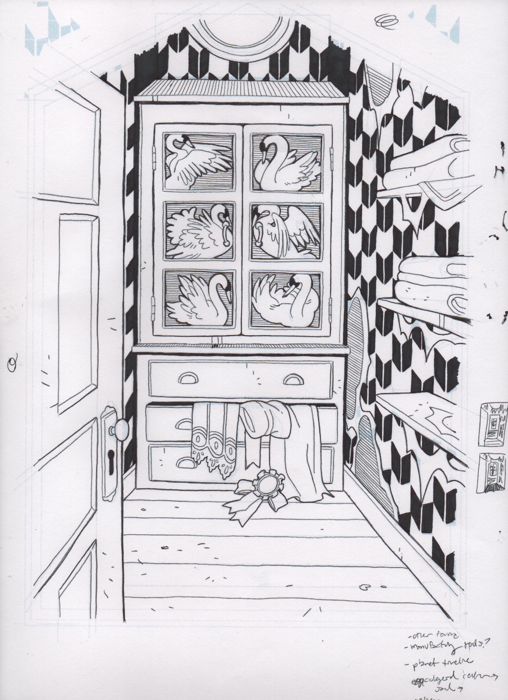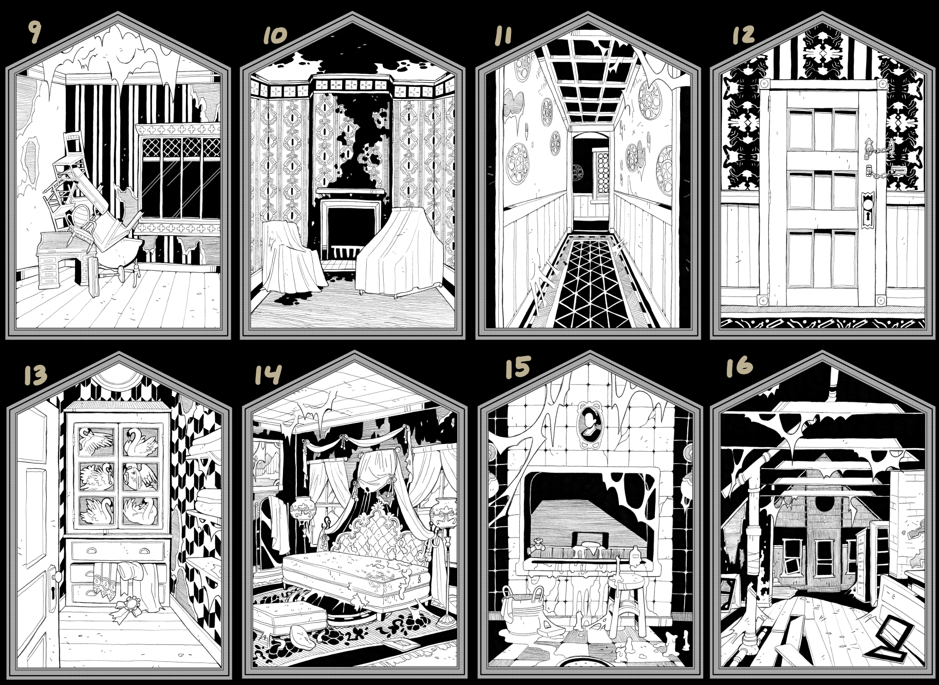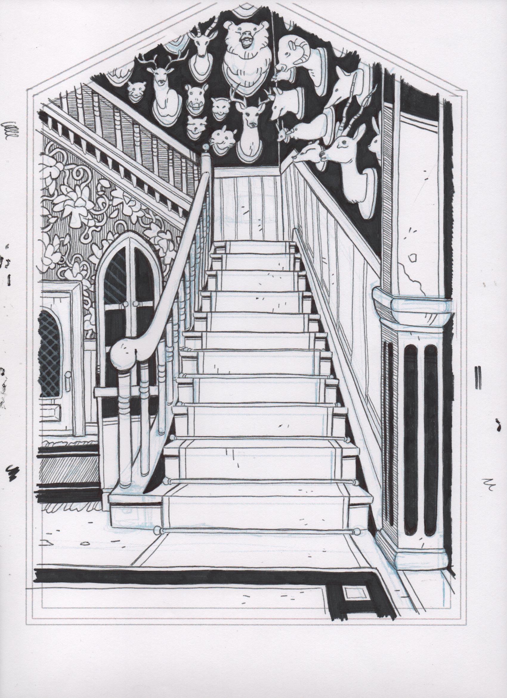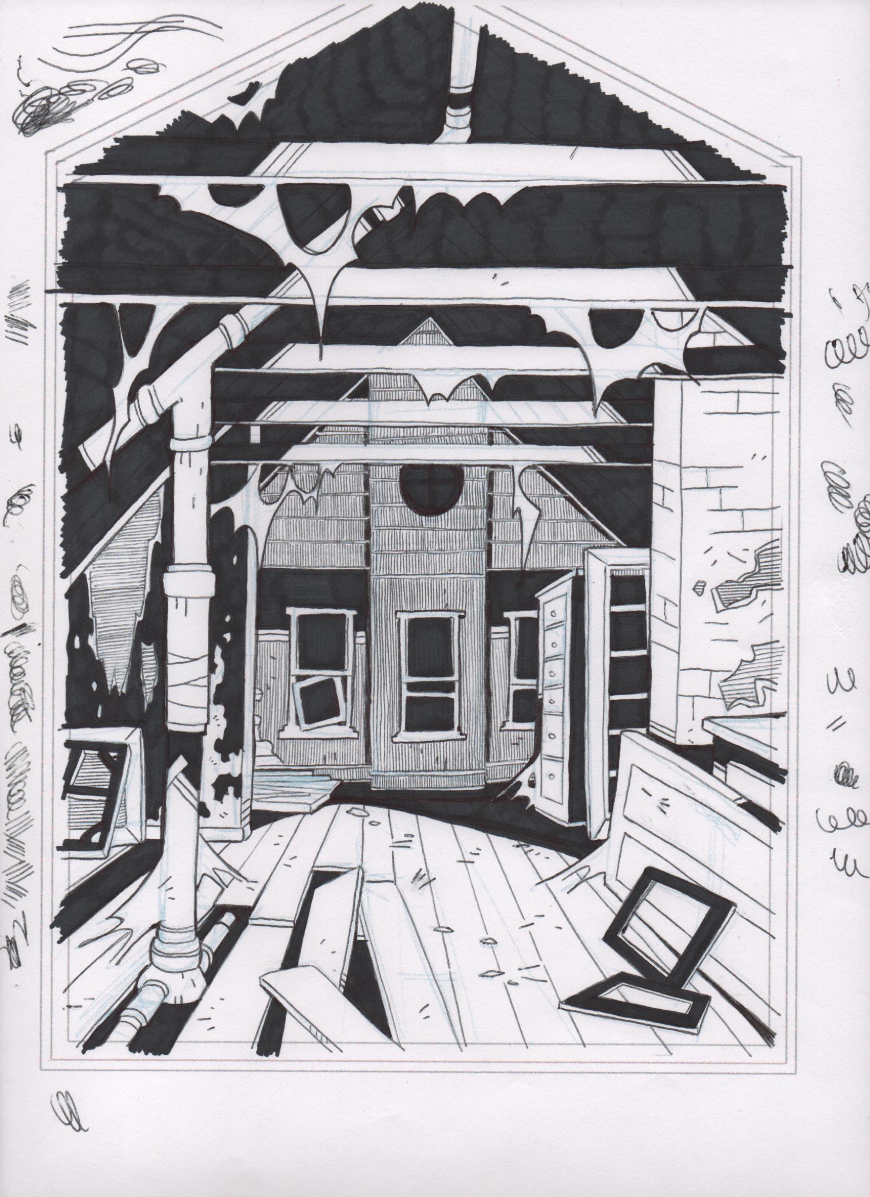 The original pen and ink illustrations from BLEAK PEAK. 9" x 12", blue sketch line warts and all. Note that because these are the original drawings, not all pages appear exactly as they do in Bleak Peak.